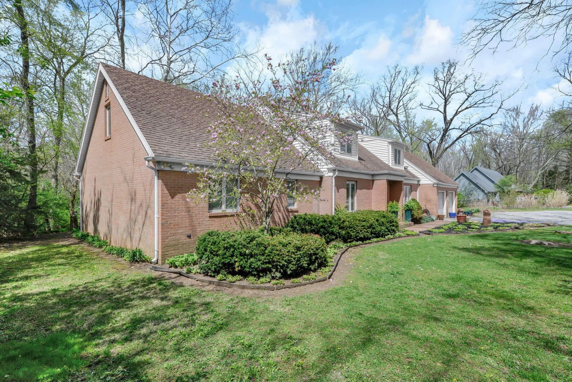 Nestled on 5 private, wooded acres with a peaceful stream winding through the woods, this beautiful 3200'+ Cape Cod brick home offers the perfect blend of nature, comfort and space. The grounds feature lovely landscaping, blooming flowers, and a cleared area ideal for gardening or outdoor enjoyment. Inside, the home showcases, hardwood floors throughout most of the main living areas, with 8x8 tile in the entry, 1/2 bath and kitchen, vinyl in the large 1st floor laundry and up-hall bath for easy maintain. The spacious first-floor master suite provides convince and privacy complete with 2 walk-in closets, a large bathroom with Jacuzzi tub and separate shower. Also, there is a large area off the bedroom which is currently used as a sitting area but could be an office. The kitchen is designed for both function and gathering, featuring an abundance of cabinetry, granite countertops, large island, newer appliances, a double oven, gas top, desktop area and a cozy eating area just off the kitchen with loads of windows overlooking the woods. Large windows throughout the home bring in natural light and include built-in blinds between the panes for a clean, modern look. Upstairs you will find 3 large bedrooms with an additional family room, additional storage space that could be finished for craft room, playroom or whatever you choose to make it, that would add around another 351'. Great sized basement offers more storage. This wonderful home is surrounded by mature trees and natural beauty, this property delivers peaceful country living with plenty of room to relax, entertain and grow. Enjoy the paths in the wooded area and Hargus Creek. This is a one-of-a-kind dream come true!