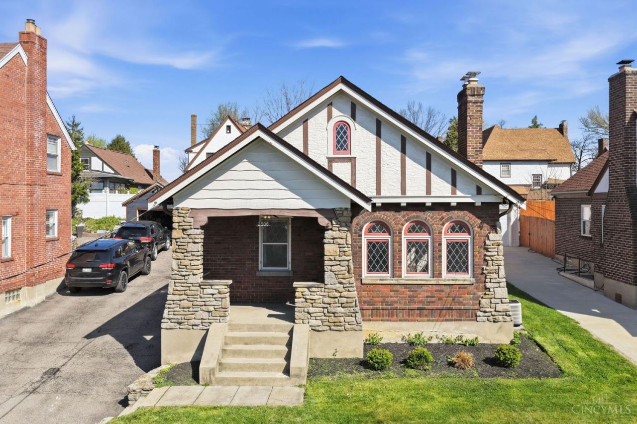 Your storybook moment is awaiting in this Tudor style Cape Cod in the heart of Norwood! Gorgeous leaded glass windows flood the living room with natural light, highlighting the original hardwood floors and timeless character. Enjoy a cozy breakfast nook off the kitchen or sip your morning coffee on the inviting stone front porch. Formal dining room off the kitchen for dinner parties, too! With first-floor living, this home offers both comfort and ease. The partially finished basement provides the perfect bonus space for a family room or rec area. Outside, you'll find a detached garage, fenced backyard, and patio with room for a firepit or play space- room to let your dogs run and roast marshmallows this fall. Centrally located in Cincinnati with quick access to the whole town come fall in love!