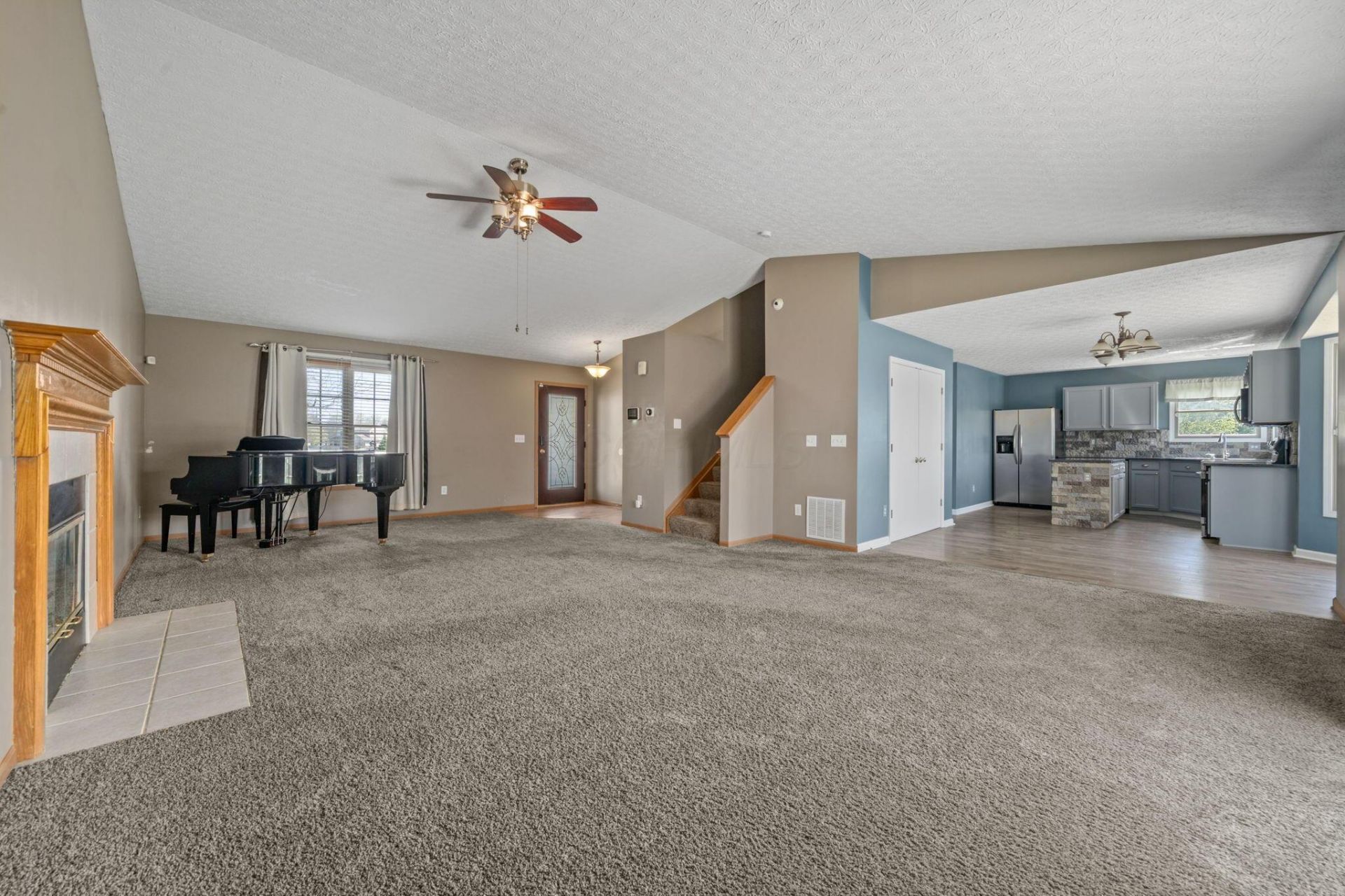 Come see one of the largest lots in Pataskala Ridge! Nestled in a quiet cul-de-sac, this beautiful home sits on 1/3 of an acre. Enjoy the view of the fully fenced backyard from the custom deck and patio! Inside, you'll love the open floorplan - the spacious Great Room with cathedral ceilings and fireplace flows into the stunning eat-in Kitchen. The Kitchen boasts granite countertops, stainless steel appliances, stone backsplash and low-maintenance wood-laminate floors. Upstairs you'll find a Guest Bath and three Bedrooms including the Owner's Suite with walk-in closet and ensuite Bathroom. All of this plus a Finished Basement that is perfect for a Rec Room, Play Room, Home Office, or Hobby Space. You can't beat this Central Pataskala location, minutes from I-70, shopping, and dining. This one won't last!