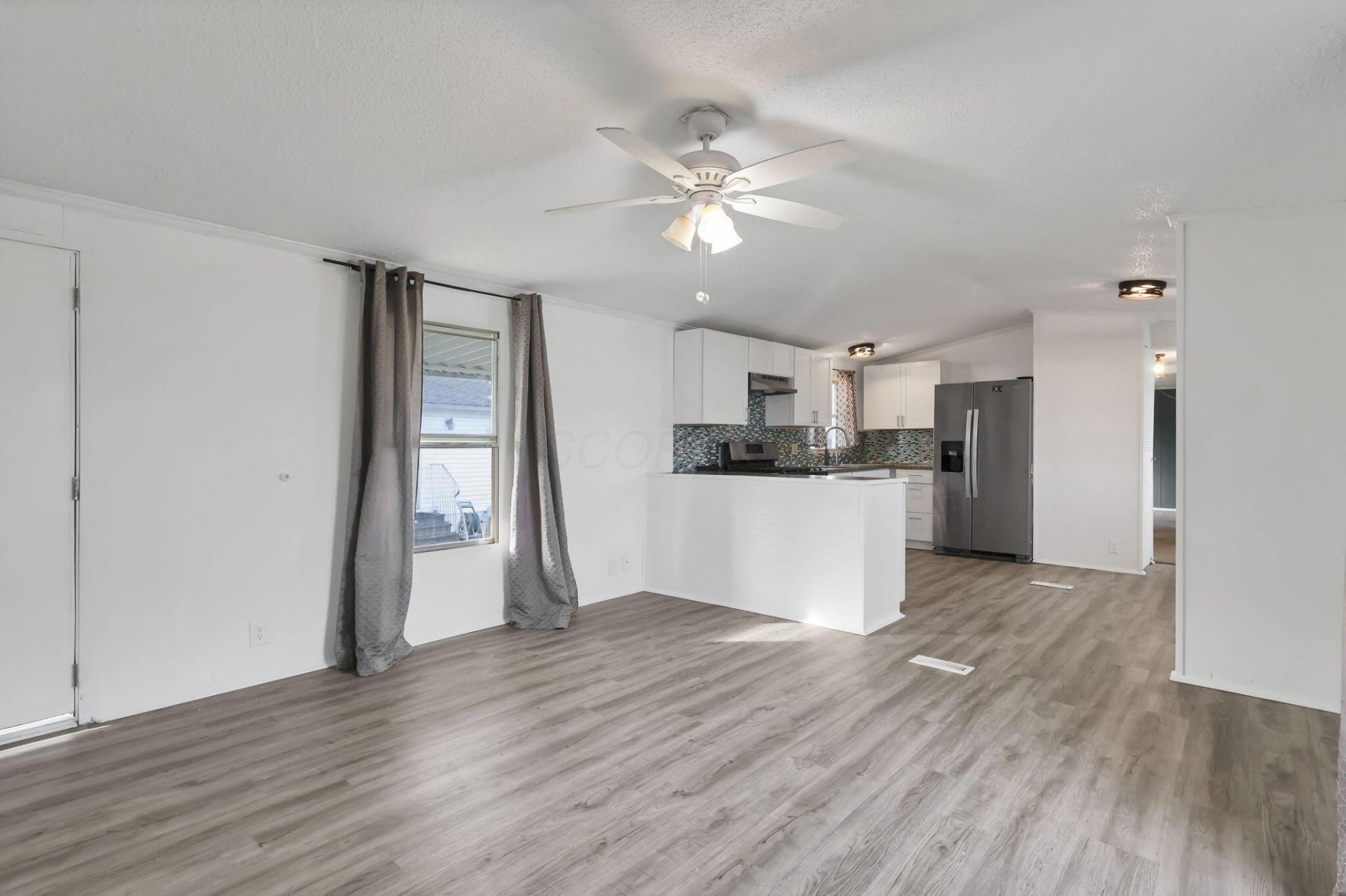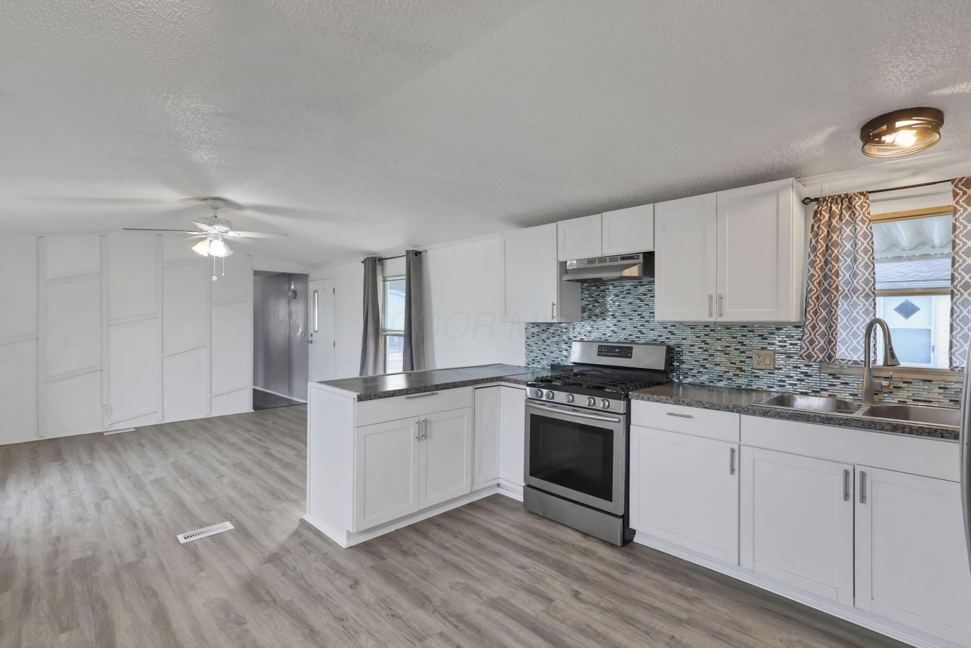 Welcome to Shenandoah Commons! Charming & inviting single-story mobile home boasts fantastic curb appeal, featuring clean light-colored siding & a welcoming covered porch in the desirable Hamilton school district! Enjoy the bright, airy living room w. large windows that bathe the space in natural light, complemented by stylish laminate flooring & a ceiling fan for comfort. The kitchen has been updated, showcasing modern white cabinetry paired w. a stunning blue mosaic backsplash! Complete w. stainless steel appliances & ample counter space, this kitchen is perfect for cooking & entertaining! The cozy bedrooms feature plush carpeting & soft, neutral tones, perfect for personal touches. Vibrant full bathroom w. modern fixtures, creating a fresh atmosphere that invigorates your daily routine! Step outside to discover a spacious grassy yard surrounded by beautiful greenery, offering a serene oasis for outdoor activities or potential landscaping enhancements. Clean lines, well-appointed finishes, & a fantastic location your options for entertainment, food, & shopping are endless nearby while keeping the peace & quiet at home! See A2A; HOA fee advertised is the lot rent.